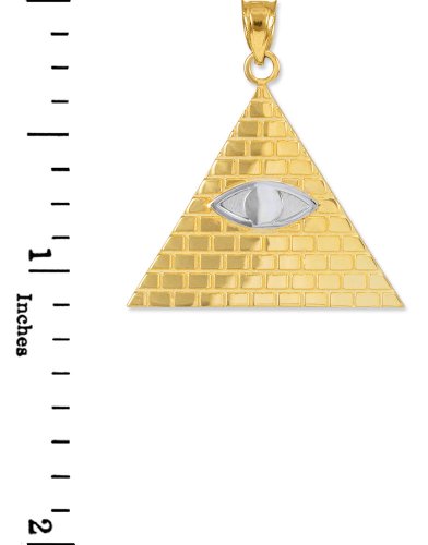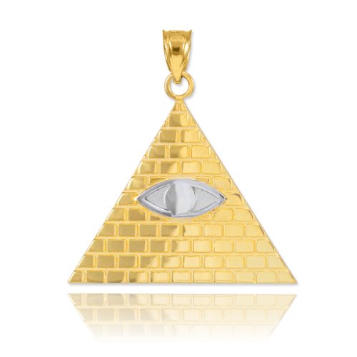 -. Binding : Jewelry -. Brand : Trendy Necklaces -. Department : womens -. Feature : supernatural inspired triangular talisman showcasing the all-seeing eye of Providence necklace pendant or bracelet charm (1.20 grams) / elegantly handmade with genuine 10 karat 2-tone white gold and yellow gold in perfect polished finish / comes with free special gift packaging / made in the USA yet offered at factory direct jewelry P.R.Ice / ships within 24 hours from the manufacturer directly to the customers -. Label : Claddagh Gold -. Manufacturer : Claddagh Gold -. Model : CM879 -. MPN : CM879 -. PartNumber : CM879 -. ProductGroup : Jewelry -. ProductTypeName : FASHIONNECKLACEBRACELETANKLET -. Publisher : Claddagh Gold -. Studio : Claddagh Gold -. Title : Fine 10k Two-Tone Gold Pyramid Charm All Seeing Eye of Providence Illuminati Pendant