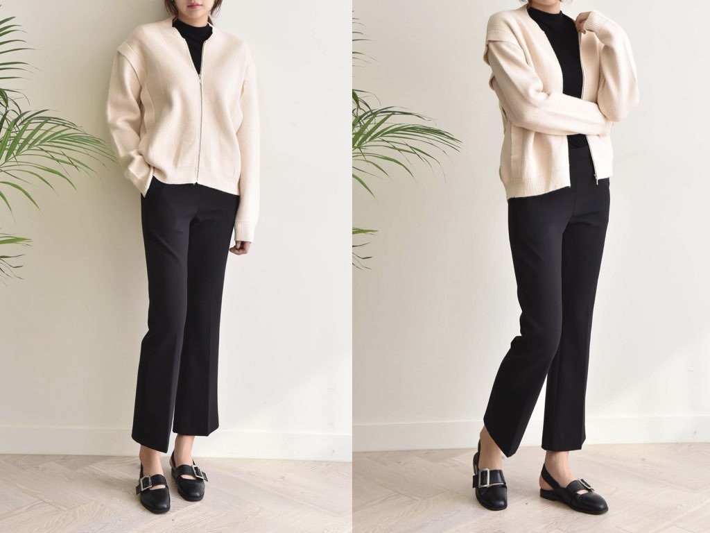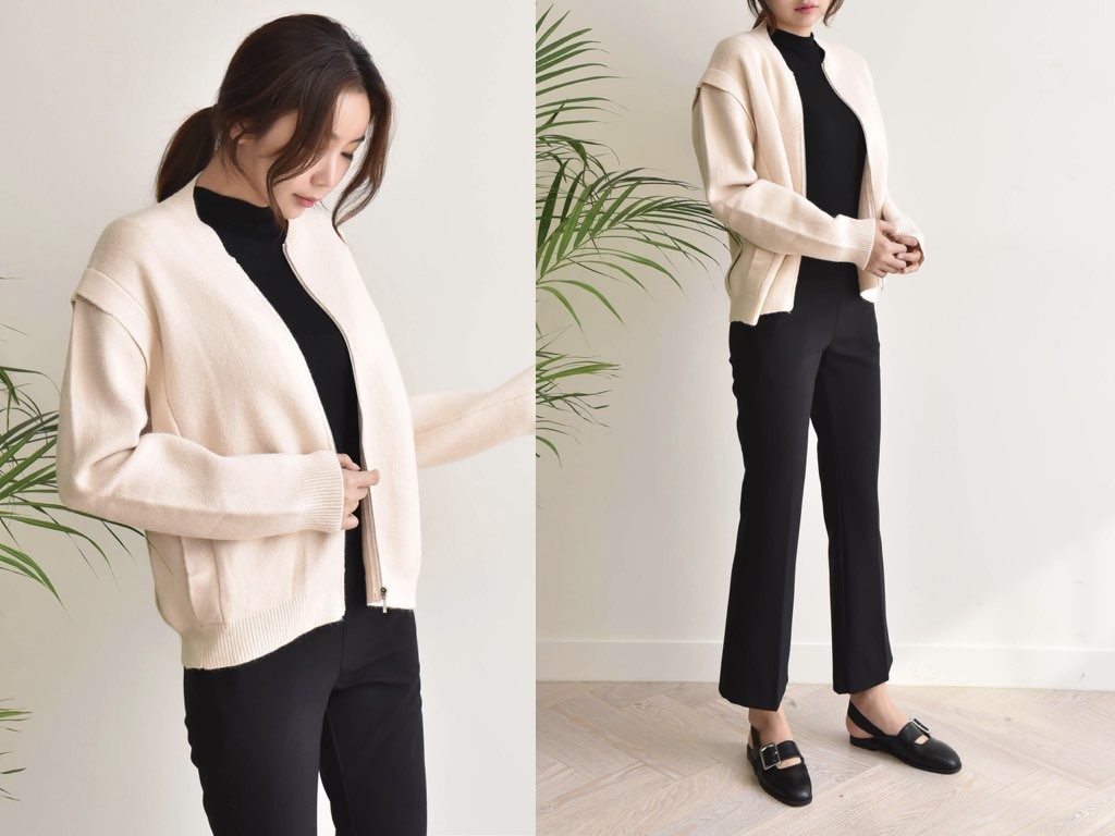 ファスナー付きのジャケットです。3色展開となっており、シンプルに合わせやすい商品です。ゆったりとしたデザインとなっており、ジップがついており開け方に応じたスタイルが楽しめます。1.基本情報色:3色展開(ブラウン/アイボリー/ブラック)サイズ:Free素材:綿65%、ポリエステル35%製造国:Korea2.サイズ情報肩幅:45cm 身幅(胸断面):51cm 腕の長さ:56cm 着丈(前):57cm (サイズは計る方法に応じて±2〜3cmの誤差があります。ご了承お願い致します)モデル着用サイズ:F※着用モデル(163cm、体重47kg、足のサイズ24.5cm)3.その他の情報厚み:中間透け感:なし伸縮性:高裏地:なし洗濯方法:ドライ(クリーニング)[注意事項]お取り寄せ商品は、海外より仕入れるため納品まで約10日前後いただきます。また店舗でも販売しており、在庫切れになる場合もございます。ご了承お願い致します。