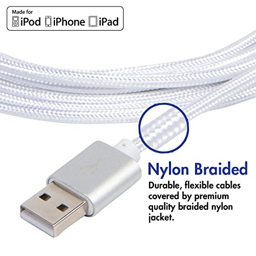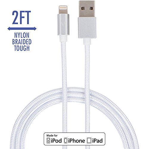vCharged 2 FT Short iPhone Cable Nylon Braided USB Lightning Charger for iPhone & iPad - Fast Charging Performance & Long Lasting Cord