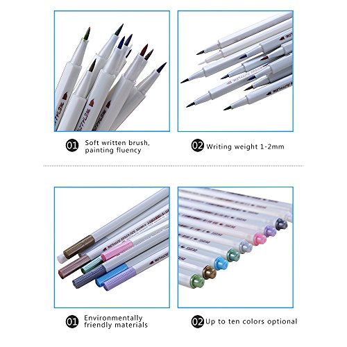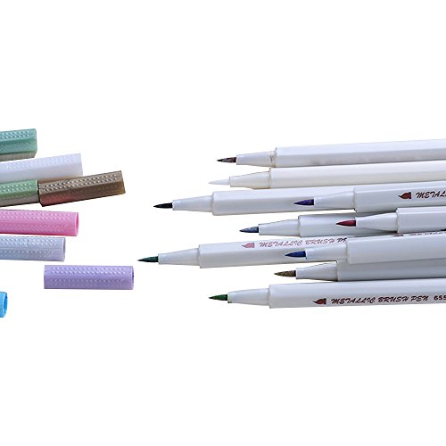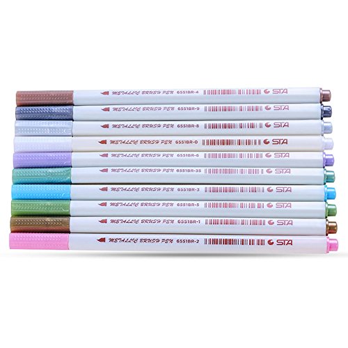 STA Metallic Brush Marker Pen Set of 10 Colors Soft Brush Round Pens Kid-Friendly Art Marker Pen for Scrapbooking Craft, Rock Painting, Mug Design, Card Making, DIY Photo Album (Brush)