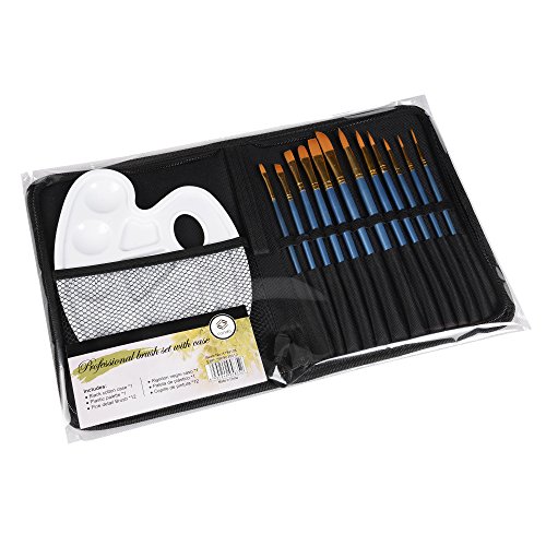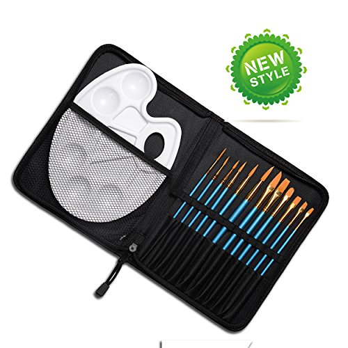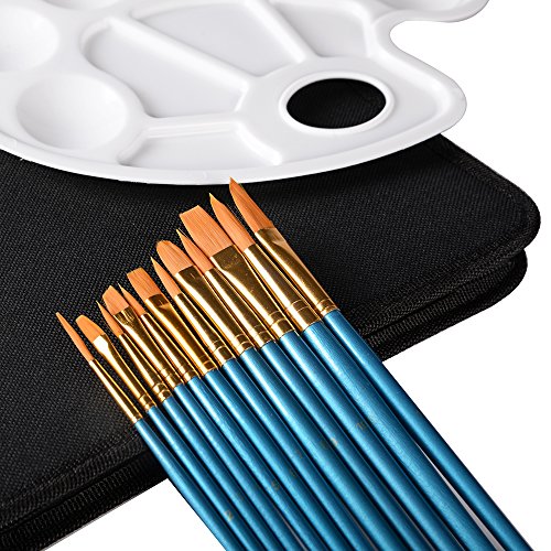 CONDA Artist 12 Pcs Paint Brush Set and Palette With 12 Brushes & Carrying Case for Watercolor Oil Acrylic Painting