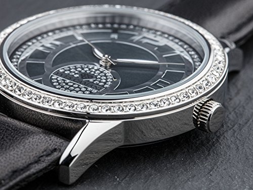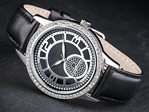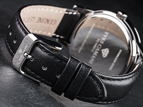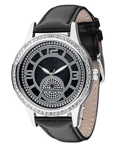 Yves Camani Rouen Women's Wris Watch Quartz Analog Dial Mother Of Pearl Silver Stainless Steel Casing & Black Leather Strap