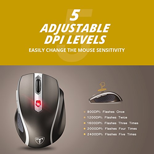 5 Adjustable DPI Levels (800-1200-1600-2000-2400), easily change the cursor sensitivity depending on your activity. No need any driver, plug and play directly.