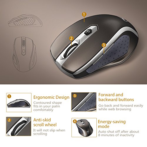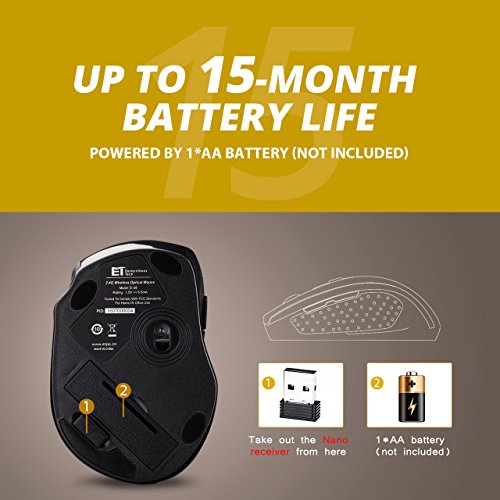 Energy-Saving. This wireless computer mouse will be auto shut off after about 8 minutes of inactivity. Up to 15-month battery life to eliminate the trouble of changing battery. Note: powered by 1*AA battery(not included).