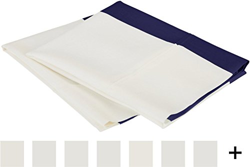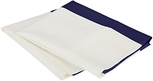 Cotton Blend 600 Thread Count Wrinkle Resistant 2-Piece King Pillowcase Set Cabana Stripe Navy Blue