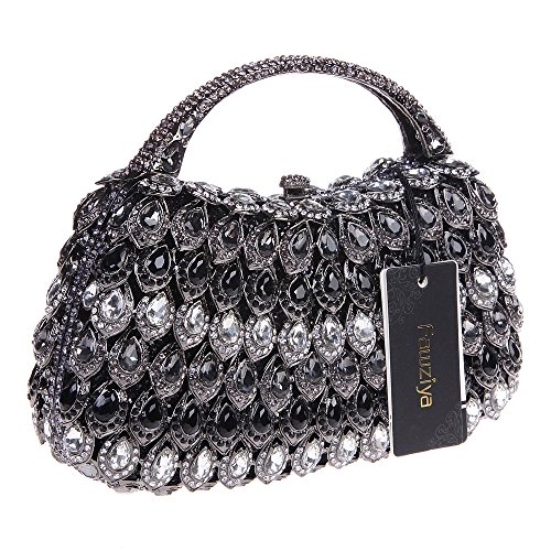 [Description] Diamonds:Fawziya use domestic grade A diamonds_12 cutting surface_a long-lasting gloss retention_one of leader in high class diamonds. Hardware:Fawziya using K Gold plating process_each hardware is carefully selected_no scratches_no rust on the surface. Fabrics:Fawziya use silk and satin_these materials are light_soft_colorful_shiny_noble and elegant. The approximate size is 18(L)x6.5(W)x14.5(H)cm_Chain: 50cm short chain removable. Ideal for holding essentials like keys_mirror for touch-ups_ lipstick and an iphone 6s.