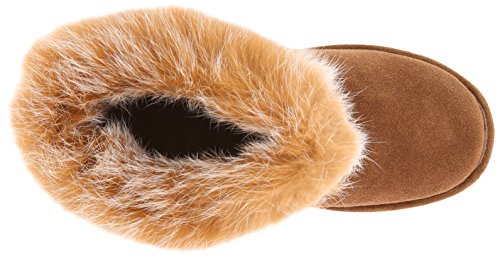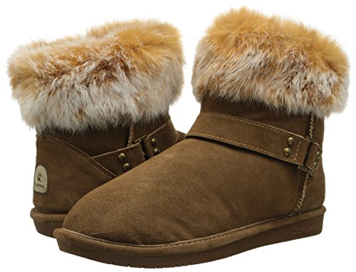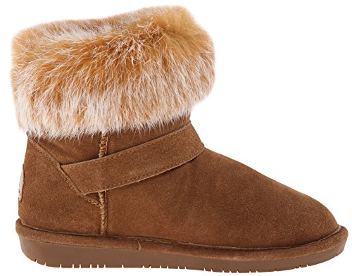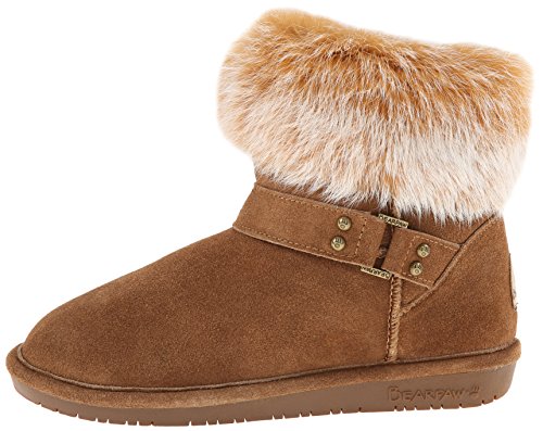 Studio : Bearpaw Publisher : Bearpaw Binding : Apparel Product Description These short suede boots by Bearpaw have a rabbit fur collar trim and a decorative strap across the front with metal details on the side. They are so easy to pull on and oh so cute! The cozy lining provides increased cushioning and all-over comfort. The outer sole is a lightweight rubber. 0