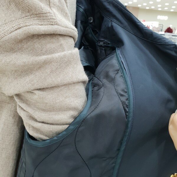 심플한 톰보이무드의 롱 자켓 탈착가능한 안감 누빔조끼로 보온성을 높힌디자인