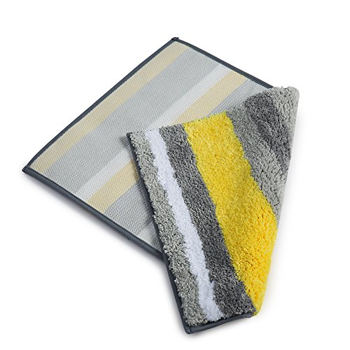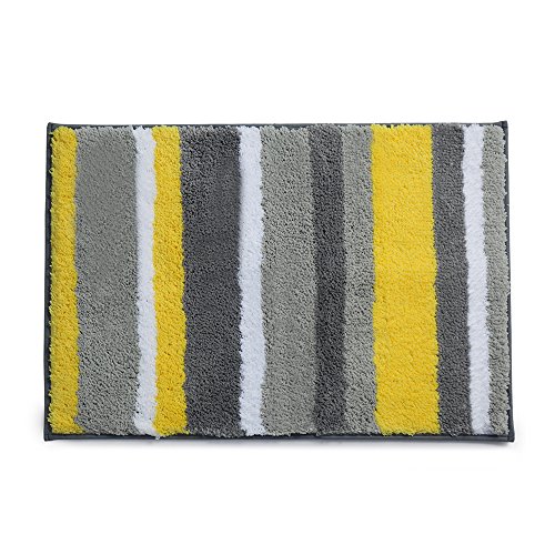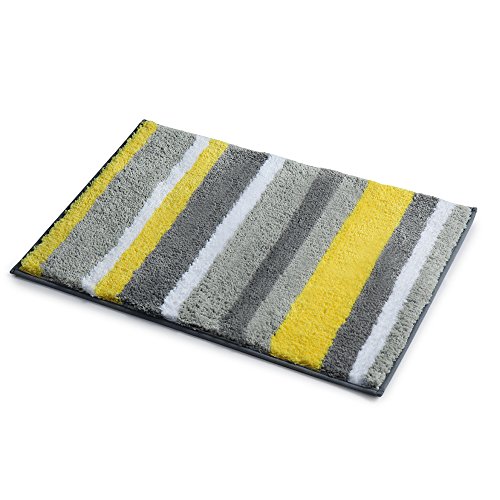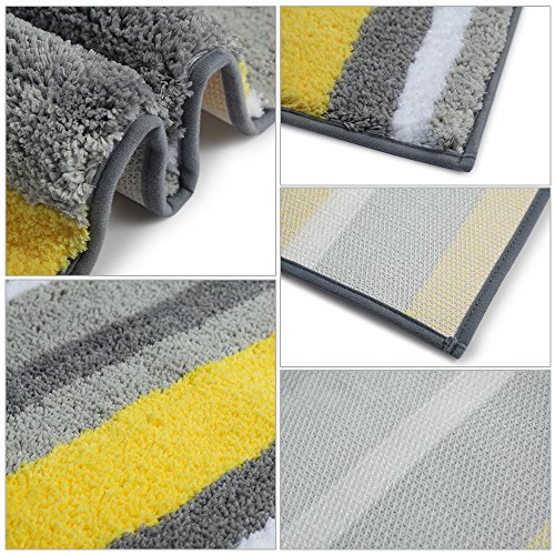 MUMENG Striped Absorbent Microfiber Bath Rug Bath Mat,Non-Slip,17.7"x25.6",Yello&Gray