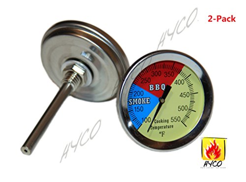 Hyco (2 Pack) 2" 550F BBQ Charcoal Grill Pit Wood Smoker Temperature Gauge Thermometer 2.5" STEM, SS RWB