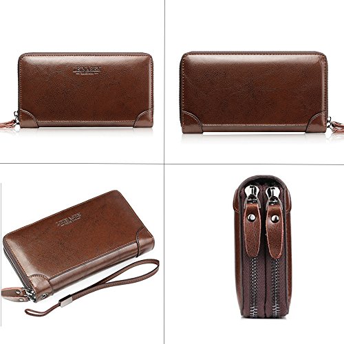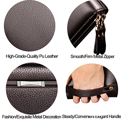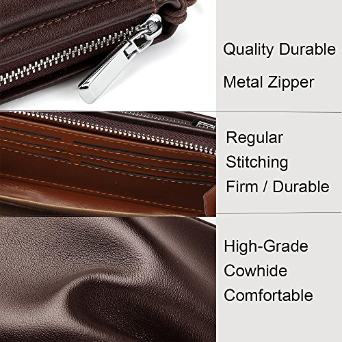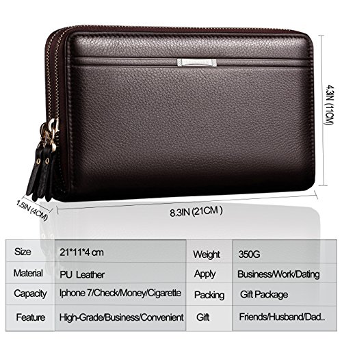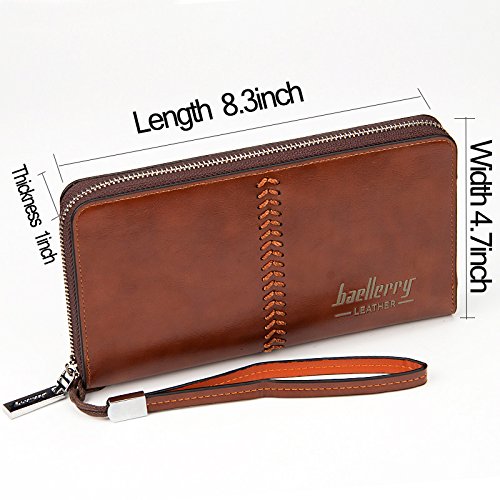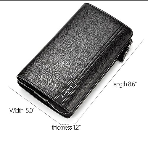 Binding : Apparel Product Description -Muitifunction Bifold Wallets for Men Multi-purpose Bifold Wallets offers secure storage and organization for your Credit Cards,Cash,Check,Coin,Keys, Cellphone and more, the wallet is can be used at home, on shopping, on holidays. from everyday Casual use to Formal Occasions! as Dating, Working Place,Traveling! -Get New Ideas for Presents. You can take it as Father's day gift, Birthday gift,Anniversary gift, Christmas gift,Thanksgiving day gift, Valentine's day gift for Father, Husband, Boyfriend, Lover, Grandfather. Description -ItemType:Zipper Closure Bifold Wallet for Men -Material:High Quality PU Leather -Gender: Men, Boys -Size:21*12*4cm / 7.9*4.7*1.5inch -Two Mian zippers Compartment with one Hand band - Inside Detail: Credit card inserts, ID window card,Checkbook holder, cash and zipper change layer -What in the package:1 X Men Money Clip Wallet Attention Please! -Please allow the smell in the course of packing and shipping, but it will be disappeared in a few days air out. -Please allow little color difference due to the monitor and light brightness. -Please allow 0.3"-0.9" in size error due to manual measurement. - Please confirm the size according to our Description Dimension instead of the photos. How to Do Daily Care - Keep it in a dry, cool and ventilated place. -Avoid exposure to chemicals,spikes and hot place. - Clean it with dry soft cloth when got stains.
