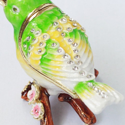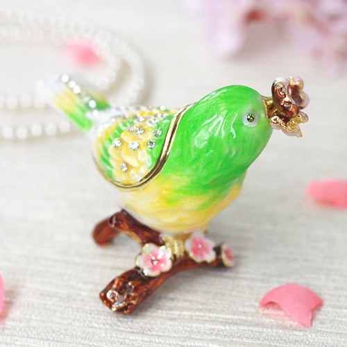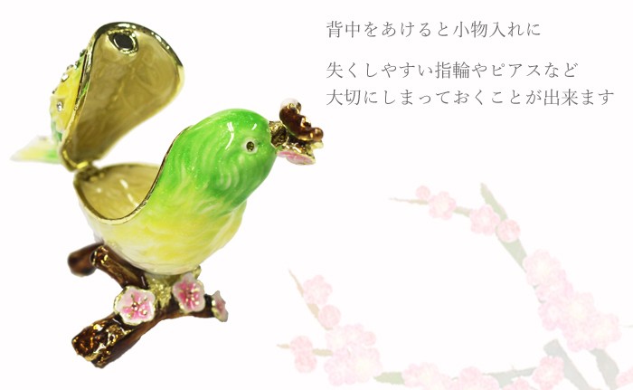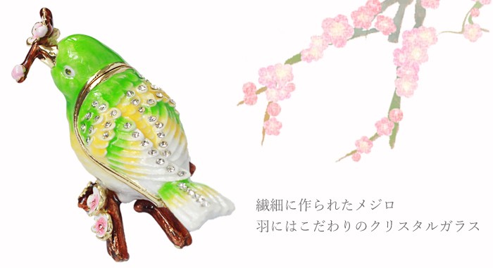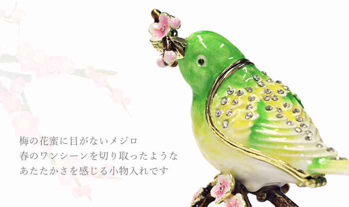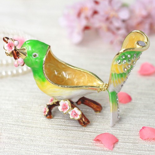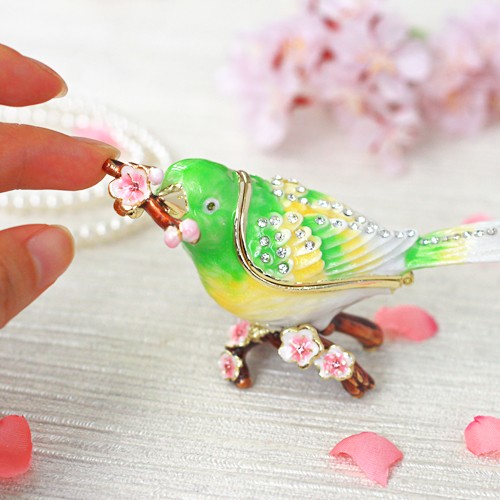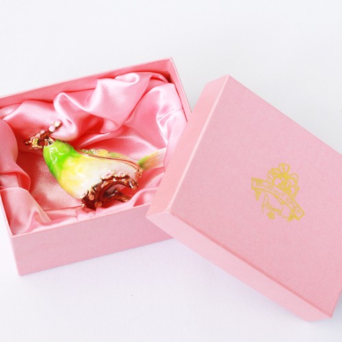 | ジュエリーボックスと言えば、指輪やピアス、ネックレスなどのアクセサリーを入れる引き出し型のケースを思い浮かべる方が多いかもしれません。 ピィアースのジュエリーボックスは、動物や花などをモチーフに作られ、合金製でずっしりとした重さがあります。また高品質のクリスタルガラスを贅沢に使用。まるでジュエリーボックスそのものが宝石のような、高級感溢れる仕上がりです。 小物入れとしても使えるように開閉口には磁石が取り付けてあり、アクセサリーなどなくしやすいアイテムの収納ができます。キラキラと美しく輝く宝石箱は、そのまま飾って楽しめるインテリア雑貨として多くの方に愛されています。 国内トップクラスのジュエリーボックスメーカーであるピィアースは、2004年ごろから本格的に宝石箱の製造を始め、現在のジュエリーボックスはなんと300種類以上。大規模展示会でもご好評いただいており、全国有名百貨店でも販売されています。 自社工場でひとつひとつ丁寧に手作りし、原型作成、研磨、加工、着色、小さなクリスタルガラスの取り付けなども全て手作業で行われるこだわりのハンドメイド品。完成後は厳しい検品の後、丁寧に梱包作業をしお客様にお届けしております。 ピィアース商品は、全国有名百貨店および全国有名宝石店チェーンにてお取り扱いいただいている高品質商品です。 ★自分へのご褒美に…コレクションして並べて飾ると、さらにかわいらしさUP! ★恋人へのプレゼント…中にアクセサリーを入れて、サプライズな贈り物として ★家族への感謝ギフト…お母さんや姉妹へ、日頃のありがとうの気持ちを込めて ★誕生日プレゼント…お友達の喜ぶ顔が見たいから、いつもと違うキラキラギフトを ★小さな女の子へ…まるでお姫様が使っているようなキラキラ宝石箱は女の子の憧れ! |