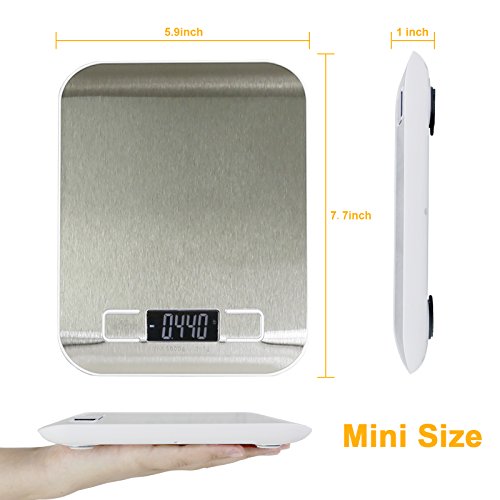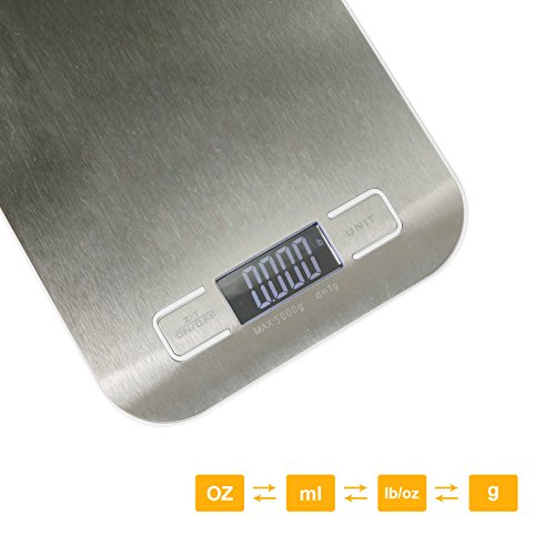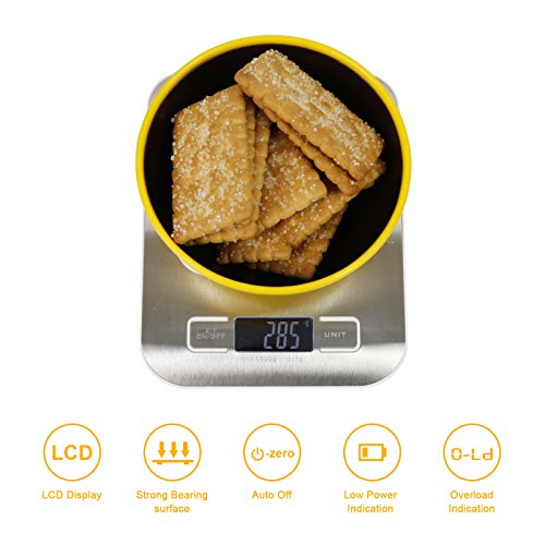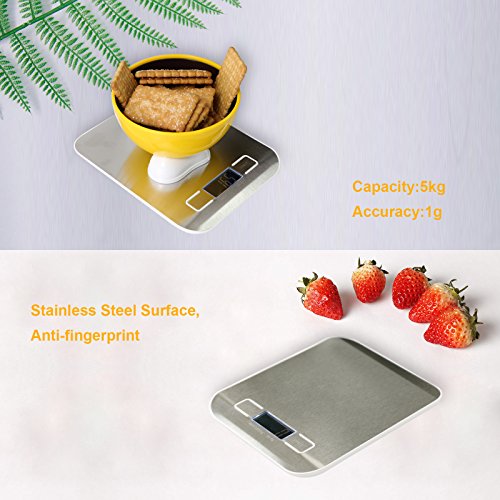 Digital Kitchen Scale, Multifunctional Food Scale with LCD Display for Baking Cooking, Stainless Steel (Batteries Included)