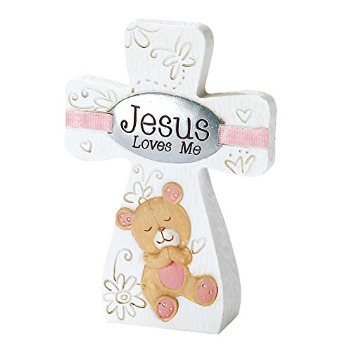 Dicksons Baby Bear Jesus Loves Me Tabletop Cross for Girl, White