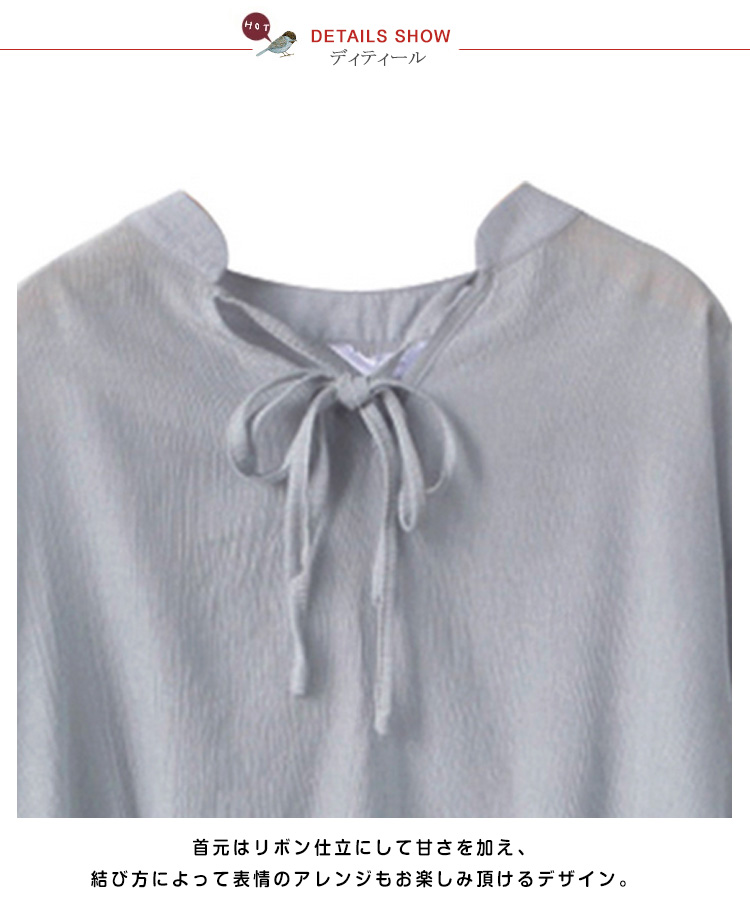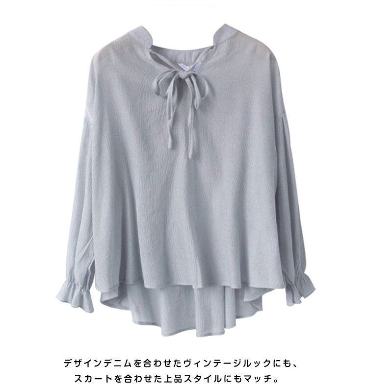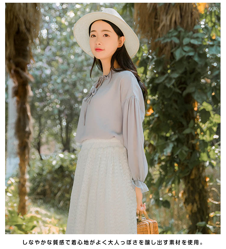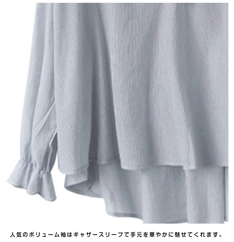 | 袖口にフリルをあしらった、上品なレディースブラウスです。ほんのりクラシカルな雰囲気で、女性らしさを感じるデザイン。程よいゆるシルエで、ふわっと体系カバーしてくれて落ち感もキレイ★しなやかな質感で着心地がよく大人っぽさを醸し出す素材を使用。軽量でライトな質感は暑い季節も重たくならずにスッキリと着られます。 | |
