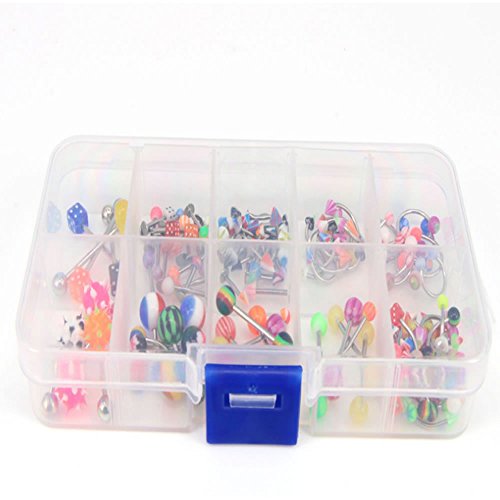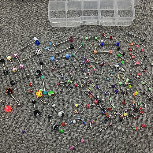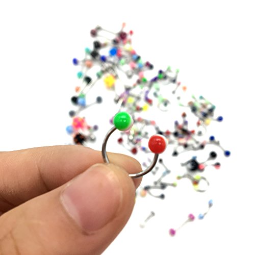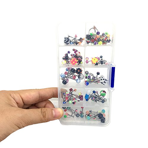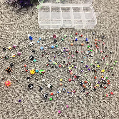 HUELE 110 PCS/24 Styles Body Jewelry Piercing Eyebrow Navel Belly Tongue Lip Bar Ring