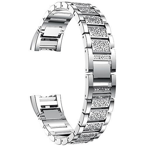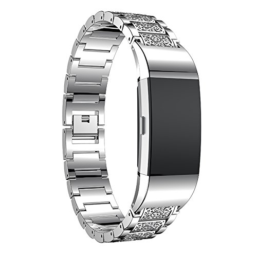 Replacement Watch Strap Band for Fitbit Charge 2 Smart Watch, Bling Bling Crystal Stainless Steel Watch Band Wrist Strap for Fitbit Charge 2 Smart Watch (Silver)