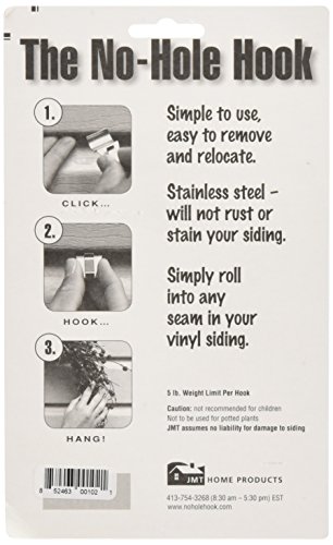 Studio : CWI Gifts Publisher : CWI Gifts Binding : Kitchen Product Description CWI Gifts 1.5" Low Profile No Hole Hook 2Pk. The No-Hole Hook is the perfect solution for adding decorations to the vinyl siding on your home or business. Simple to use, you just roll the hook into any seam in the vinyl siding. The hook is stainless steel so it won't rust or stain your siding. The No-Hole Hook is available in 2 styles, this one is called the Low Profile and has a slight bend in the design. There are 2 hooks per package. Hooks are approximately 1-1/2". 0