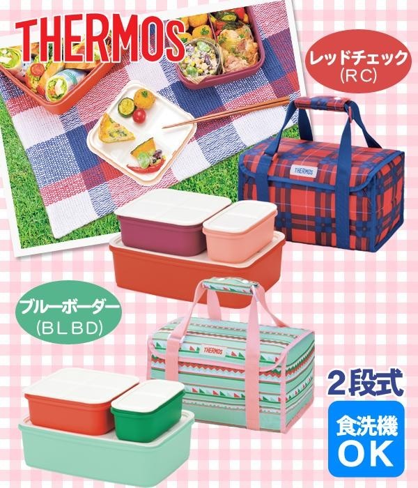| 行楽、学校行事に大活躍のランチボックスに、保冷力のある断熱構造のバッグがついています。2段重ねになったタイプのお弁当箱で、収納時には容器もバッグもコンパクトになります。 |
