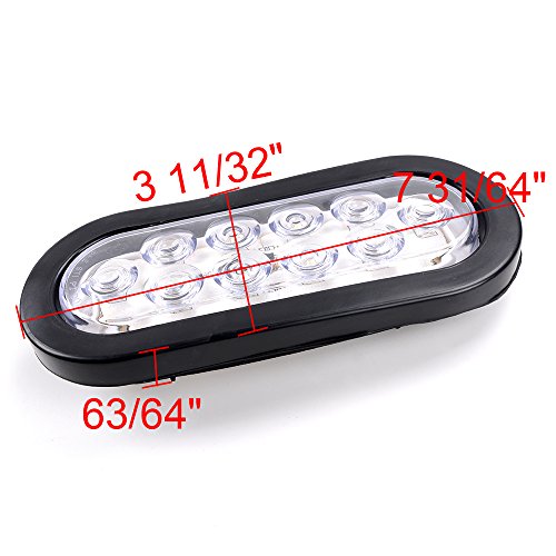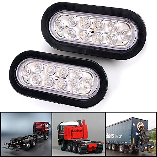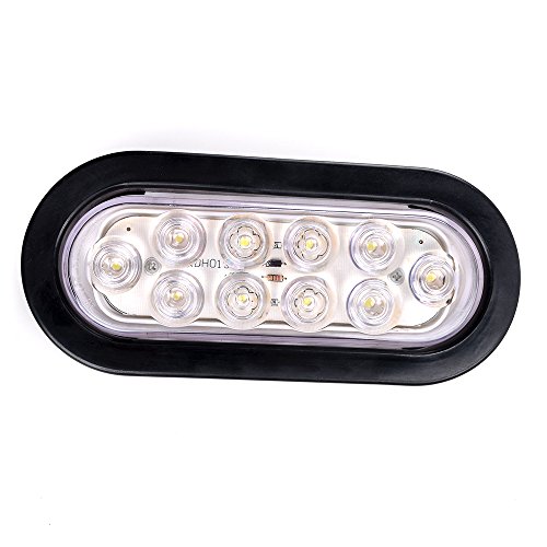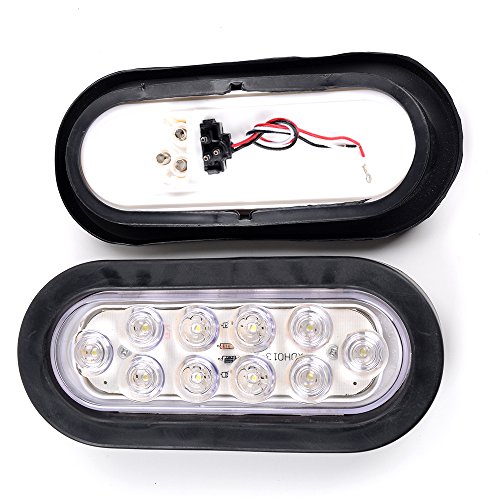 Bright White 6000K Oval 10 LED Clear Lens Backup Reverse Fog Light Bulb Grommet Plug Car Truck Trailer RV UTE UTV Boat Vans (2 pcs)