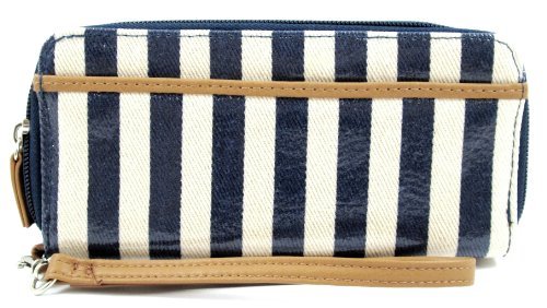 -. Title : Mundi Blue Stripe Nautical Double Zip Clutch Wristlet Wallet
