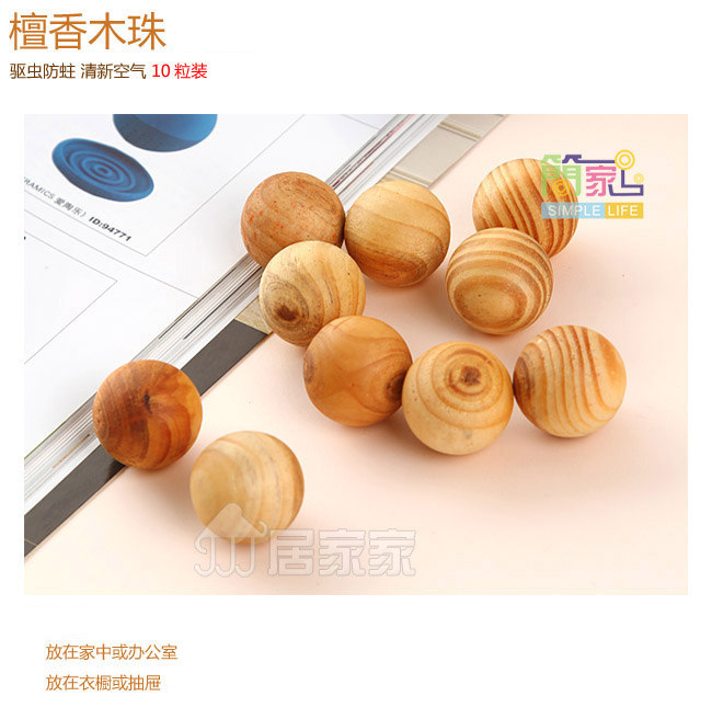 Basic Information Name: insect repellent sandalwood incense wood beads fresh air K0595 Size: Single grain diameter: 2.5cm Material: Wood Packing: PP bag Weight: 40g Color as shown Summary: Instead of mothballs placed in the closet, office drawers, mildew moth, insect repellent; defensive room, car, bathroom, fresh air; compact and practical, can be carried in a small bag, Wood knot scars and cracks are normal, does not affect the use of results