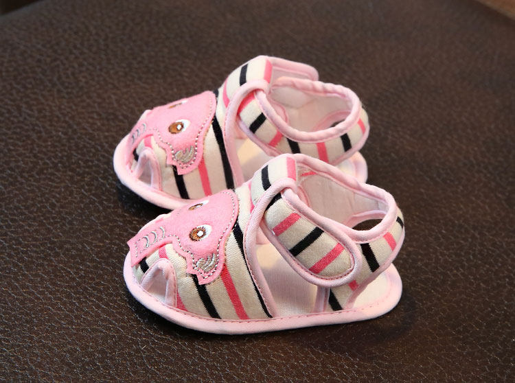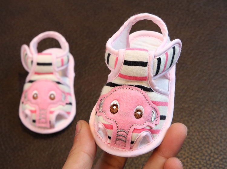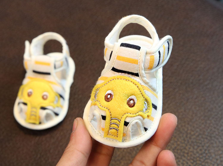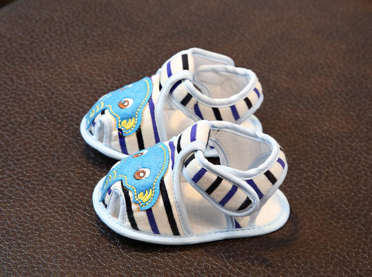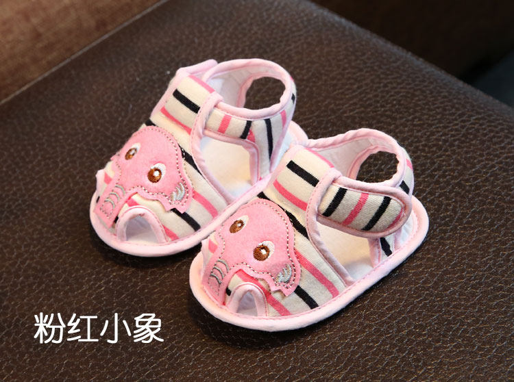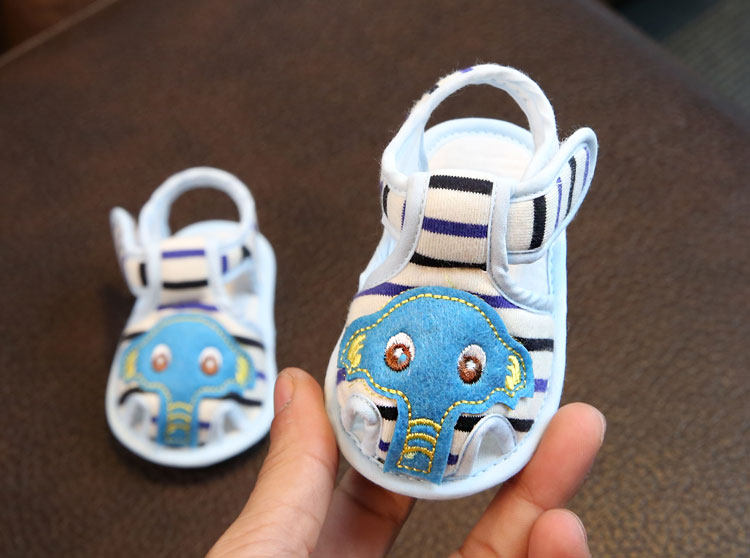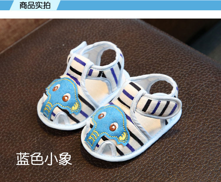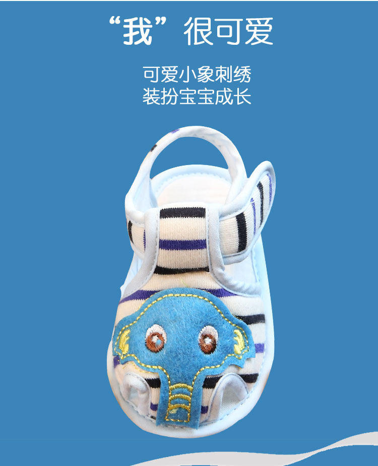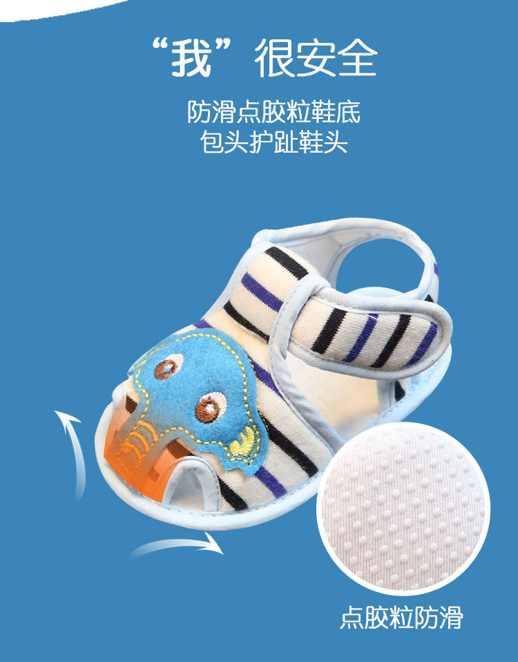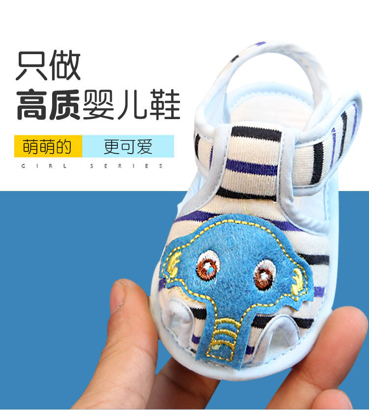 婴儿学步鞋夏男0-1岁防滑软底女包头布凉鞋夏天六个月宝宝鞋男童