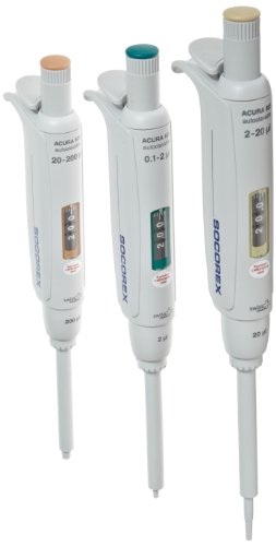 Wheaton Socorex W810320 Acura Manual 3 Adjustable Pipettes Trio Pack, 0.1-2 microliter, 2-20 microliter, 20, 200 microliter Volume