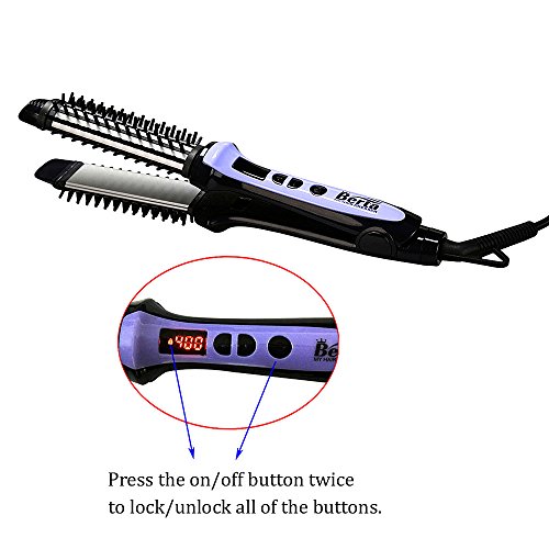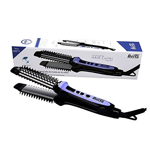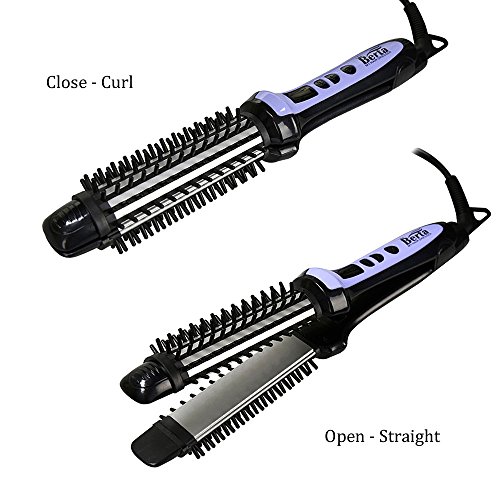 Berta 3 in 1 Hot Brush & Hair Straightener & Curler Ceramic Dual Voltage 1.25in. Professional Hair Flat Iron US Plug