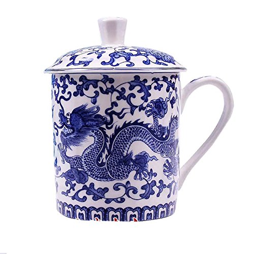 -. Feature : Material:ceramic ---- Capacity:500ml / Size:width(include handle):15cm,height:15.5cm / Color:white and blue / Pattern:blue Chinese dragon / Package quantity:1