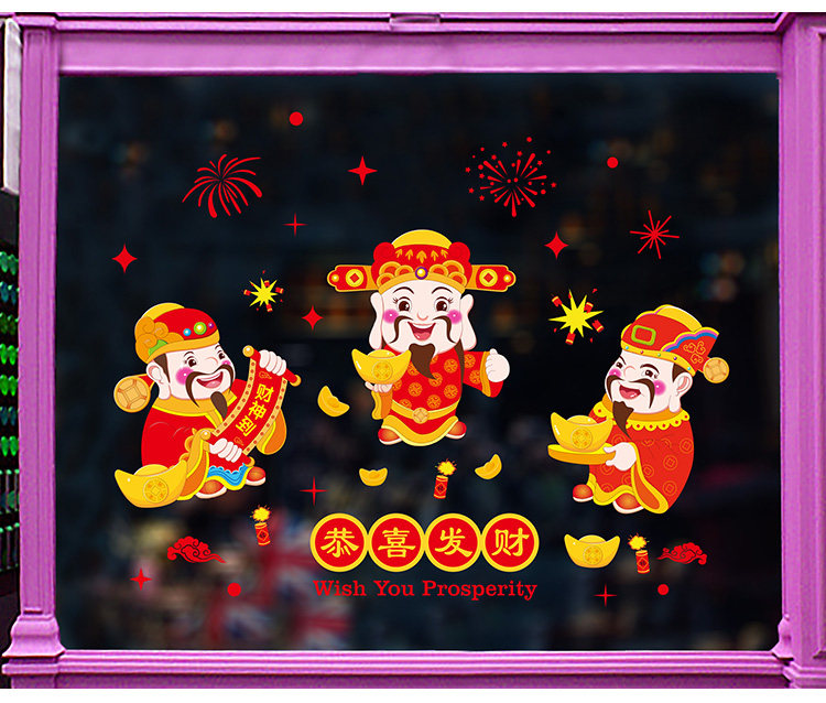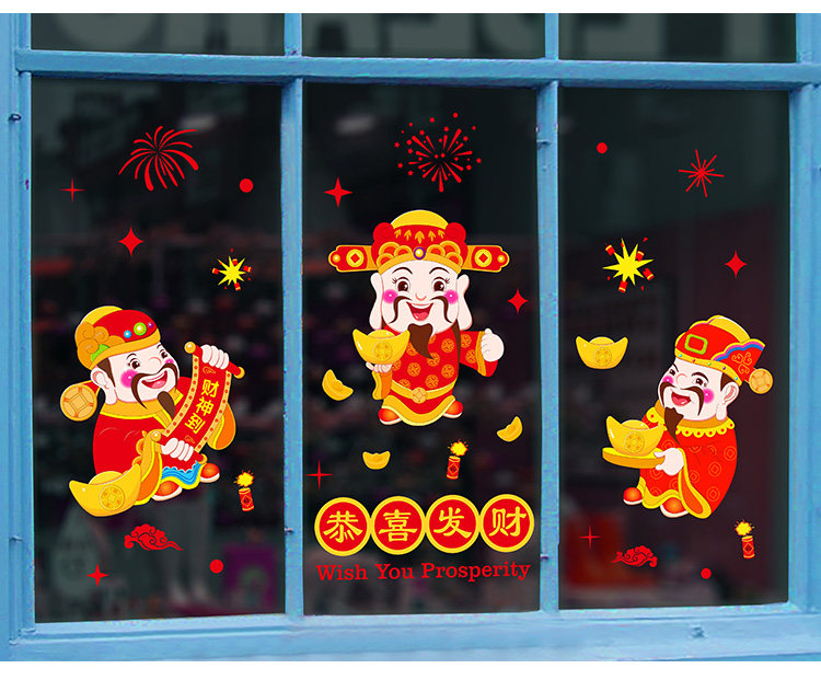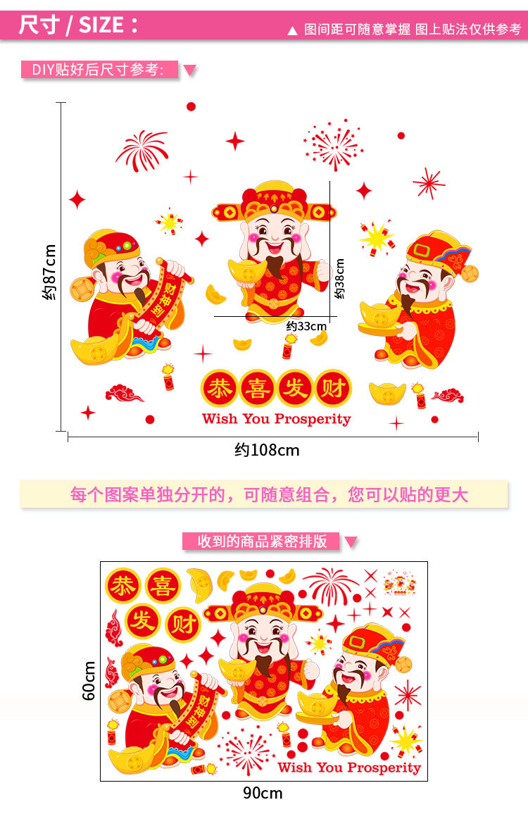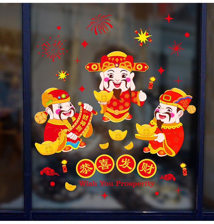 店铺橱窗户贴花门贴过年墙贴画新年装饰品恭喜发财神春节玻璃贴纸