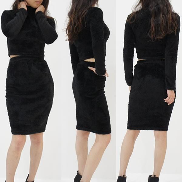 | もこもこ セットアップ トップス スカート 2点セット 黒 無地[ネコポス不可] 【もこもこ ふわもこ セットアップ ニット レディース 女性 黒ブラックblack 長袖 トップス スカート ミディアム丈 ひざ丈 ルームウェア 上下セット 着回し 秋冬 起毛】 | |