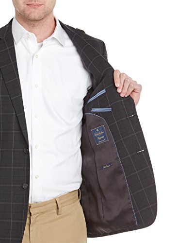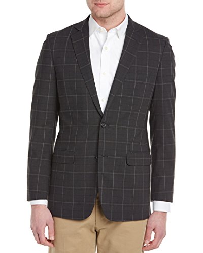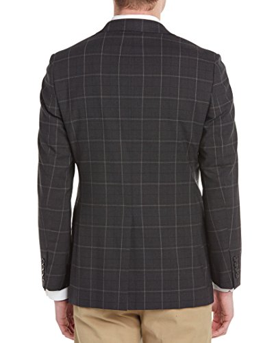 Feature : Color/pattern: charcoal windowpane / Approximately 29in from shoulder to hem / Measurement was taken from a size 40R and may vary slightly by size / Design details: notch lapel, button cuffs, dual front flap pockets, left chest pocket, center back vent, three interior pockets / Two-button closure
