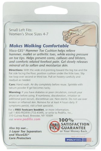 Studio : PediFix Publisher : PediFix Binding : Health and Beauty Product Description Gel Hammer Toe Cushion eases pressure on toe tips as it comforts and supports bent-under toes. This soft, contoured pad also relieves forefoot pain while helping prevent blisters and corns. Adjustable toe loop holds cushion securely in place. 0