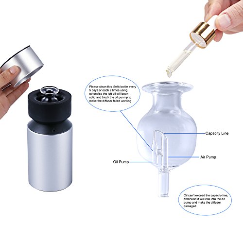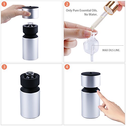 - Essential Oil Diffuser - 100% pure essential oil diffuser.No need to add water,no heat.The device will not have obvious mist, and after a period of time use, the mist will decrease or not, as long as you can smell it, the diffuser is working.Can help you improve quality of sleep & ability to focus, soothe your mood & relieve stress and purifying the air