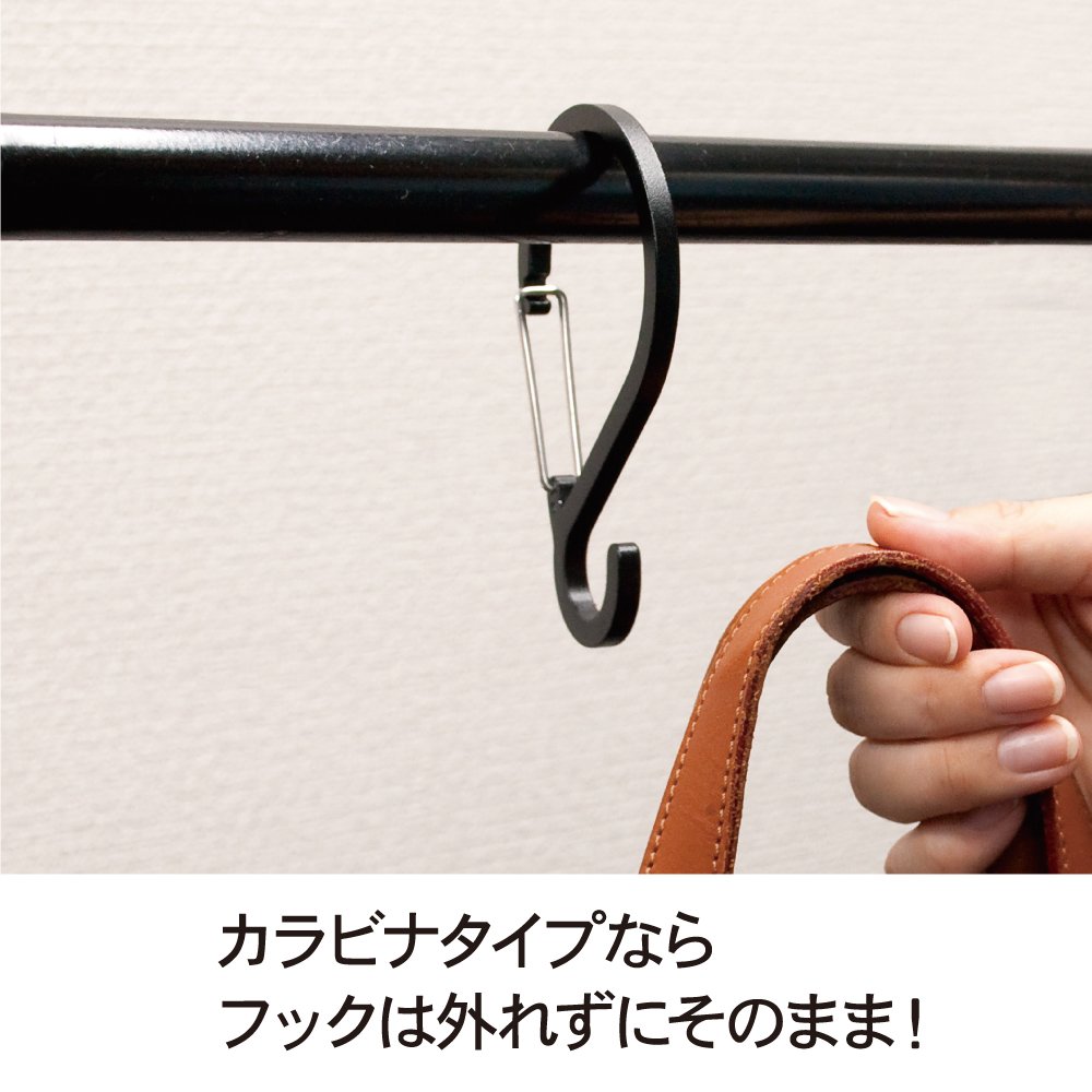 S - shaped hook of carabiner type which does not fall off together when taking the thing hung.