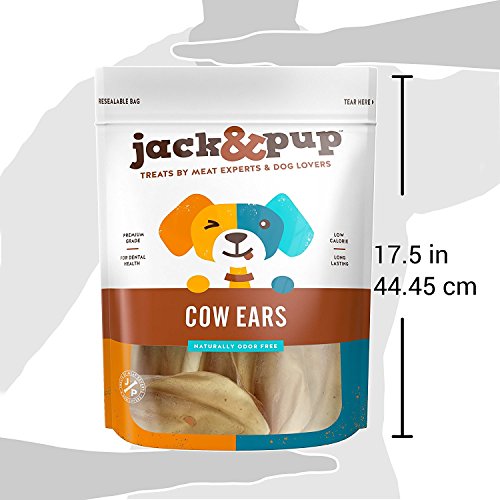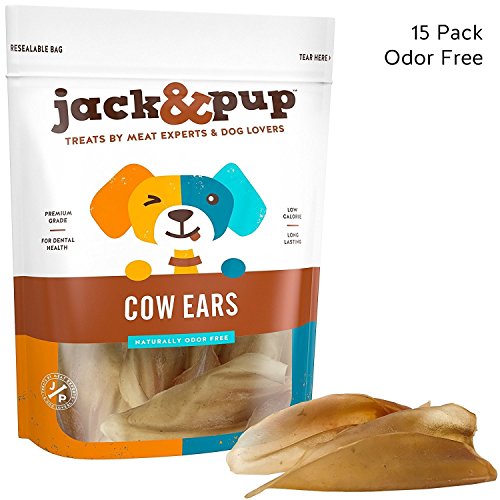 -. Title : Jack&Pup Premium Grade Odor Free Cow Ears Dog Treats, (15 Pack) – 8” Long All Natural and Unflavored Gourmet Dog Treat Chews – Fresh & Tasty Low-Calorie Treat