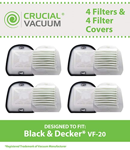 -. Title : 4 Black & Decker VF20 WASHABLE, REUSABLE VF20 DustBuster Filter Plus Cover; Compare With Black & Decker Vacuum Part # VF20, VF-20, 499739-00, 49973900; Designed & Engineered by Crucial Vacuum