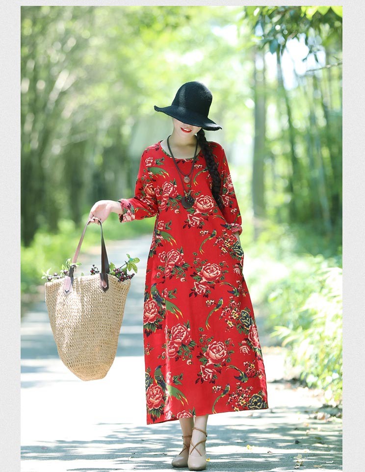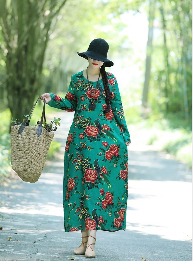 ストンしたシルエットがかわいいロングスリープひざ下丈ワンピース♪