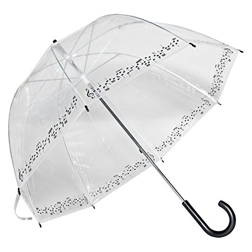 -. Feature : Sturdy canopy constructed of 100% EVA plastic / Clear canopy offers an unobstructed view / 35-in. long steel pole with white durable plastic handle / Borders trimmed in music notes / Reinforced steel ribs provide high durability