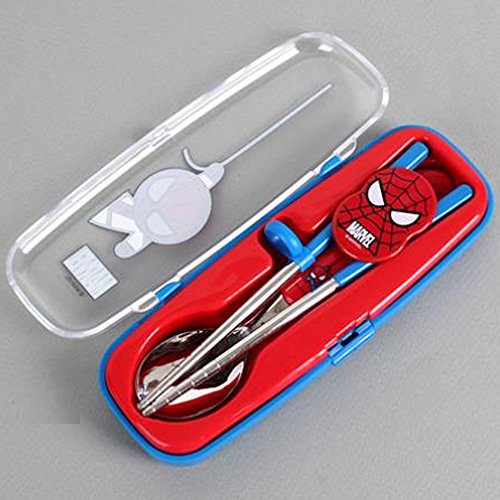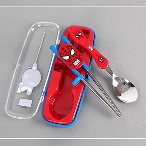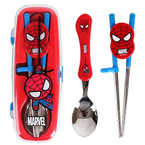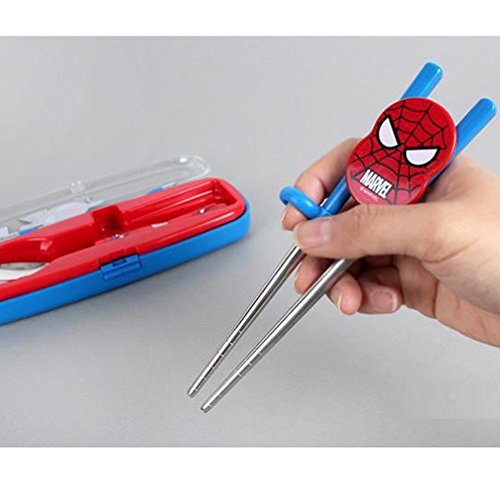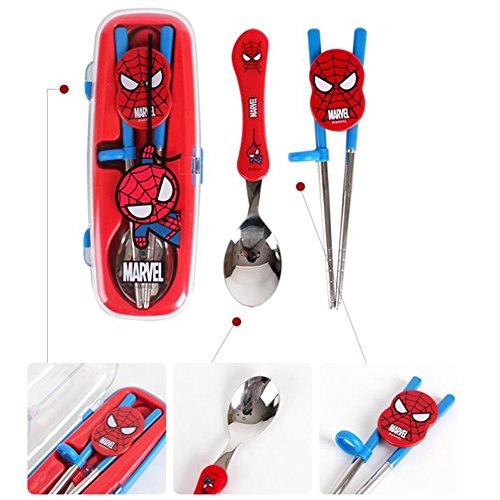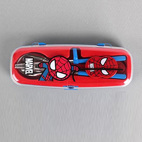 Marvel Spiderman Flatware Kids Nursery Baby Spoon and Training Chopstick Set with a Portable Box