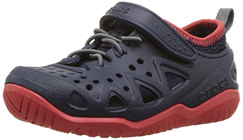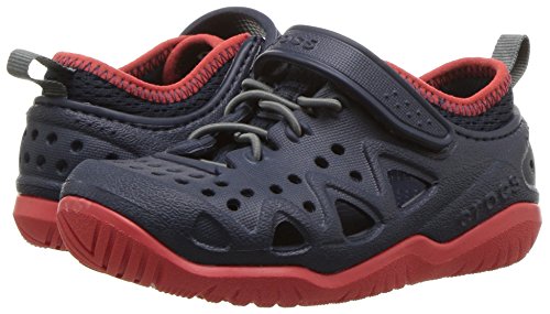 -. Binding : Apparel -. Brand : C.R.O.C.S -. Department : unisex-child -. Feature : Lightweight, all-purpose shoe with flexible upper and ports to shed water and debris / Go-anywhere shoe on land or around water / Croslite foam construction wont absorb water / Relaxed fit, Iconic C.R.O.C.S comfort / Half Size: order up -. Label : C.R.O.C.S -. Manufacturer : C.R.O.C.S -. Model : 204989 -. PackageQuantity : 1 -. ProductGroup : Shoes -. ProductTypeName : SHOES -. Publisher : C.R.O.C.S -. Studio : C.R.O.C.S -. Title : C.R.O.C.S Kids' Swiftwater Play Shoe
