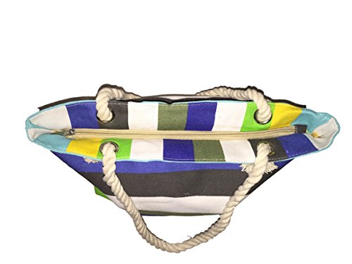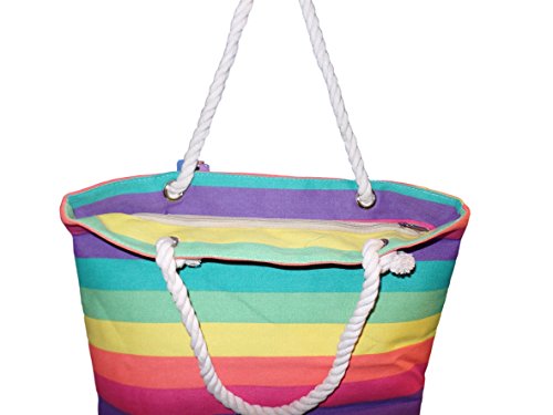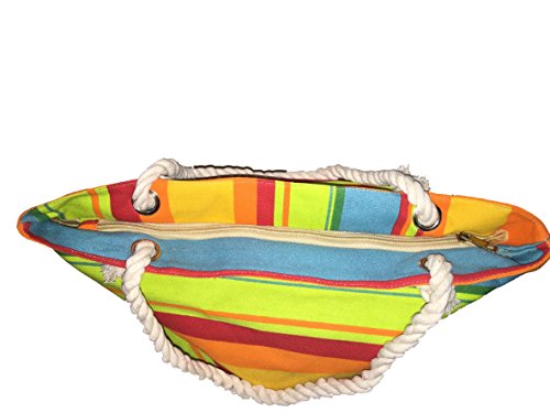 -. Binding : Apparel -. Brand : Fresko -. Department : unisex-adult -. Feature : Top Zip Closure / Nautical Rope Double Handles with 9" Drop / Lined with Slip Pocket / Sturdy Canvas / Dimensions: 18" x 13" x 5" -. Model : BB1167 -. PackageQuantity : 1 -. ProductGroup : Apparel -. ProductTypeName : BAG -. Title : Custom Personalized Multi Color Striped Canvas Beach Tote Bag - 18" X 13" X 5"