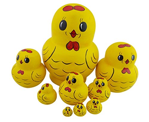 -. Feature : Traditional russian dolls:matryoshka nesting dolls / Cute Lovely animal pattern:yellow chicken / Contains 11 dolls,stack into one another to appear as one / It's wooden and handmade,so every one is unique / Perfect for kids toy and special home decoration