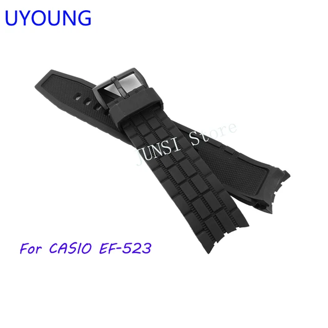 Uyoung 손목 ef-523 시계 밴드 품질 블랙 실리콘 고무 스트랩 남성 팔찌