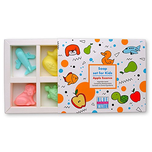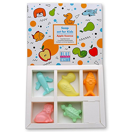 - CUTE SHAPES AND SCENTS: With the choice of apple or litchi scents available, the BLUE WHITE BEAUTY BATH SOAP BARS FOR KIDS have a Yellow Sweet Duck, Blue Fast Airplane, Pink Cute Puppy, Green Tattle the Turtle, and Orange My Fish; young ones will look forward to bath time when they get to play with their favorite soap