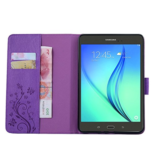 Galaxy Tab A 8.0 Case, SM-T350 Case, Dteck(TM) Slim Fit Protective Synthetic Leather Stand Case [Card Slot] Flip Wallet Pocket Cover with Magnetic Buckle for Samsung Galaxy Tab A 8.0(04 Purple)