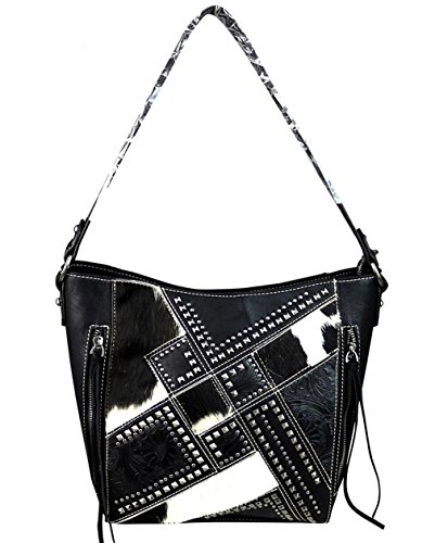New! Trinity Ranch Concealed Carry Hair-on-Hide Studded Hobo - Black