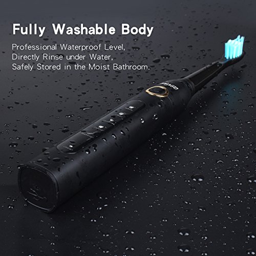 -. Feature : Powerful & Perfect for Oral Health: food grade head, 40,000 micro-brush per minute, whiten teeth, remove up to 100% more plaques and stains compared to manual toothbrushes, relieve tooth pain and gum issues. / - Long Basting Battery: practical USB powered, a full charge for 30-day use, not have to stay pled in, quite convenient. Overcharge or overdischarge protection. IPX6 waterproof & washable body for brushing or stored in the moist bathroom. / - 5 Setting Modes: vibration from soft to strong to comfort & accommodate your teeth based on different oral condition, 30 seconds dentist-recommended interval, shuts off at 2 minutes, reminds when to brush the next oral area. / - Family Use: 55g handy and light body, food grade DuPont bristle, little head for safe and deep cleaning, low vibration noise, suitable for kids and adults use. / - Guarantee: 30-day money back, 2-year warranty. Give it a try!