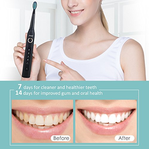 -. Title : Electric Toothbrush 30 Day Use on Single Charge 5 Optional Modes USB Powered Rechargeable Sonic Toothbrushes 3 Replacement Heads Black